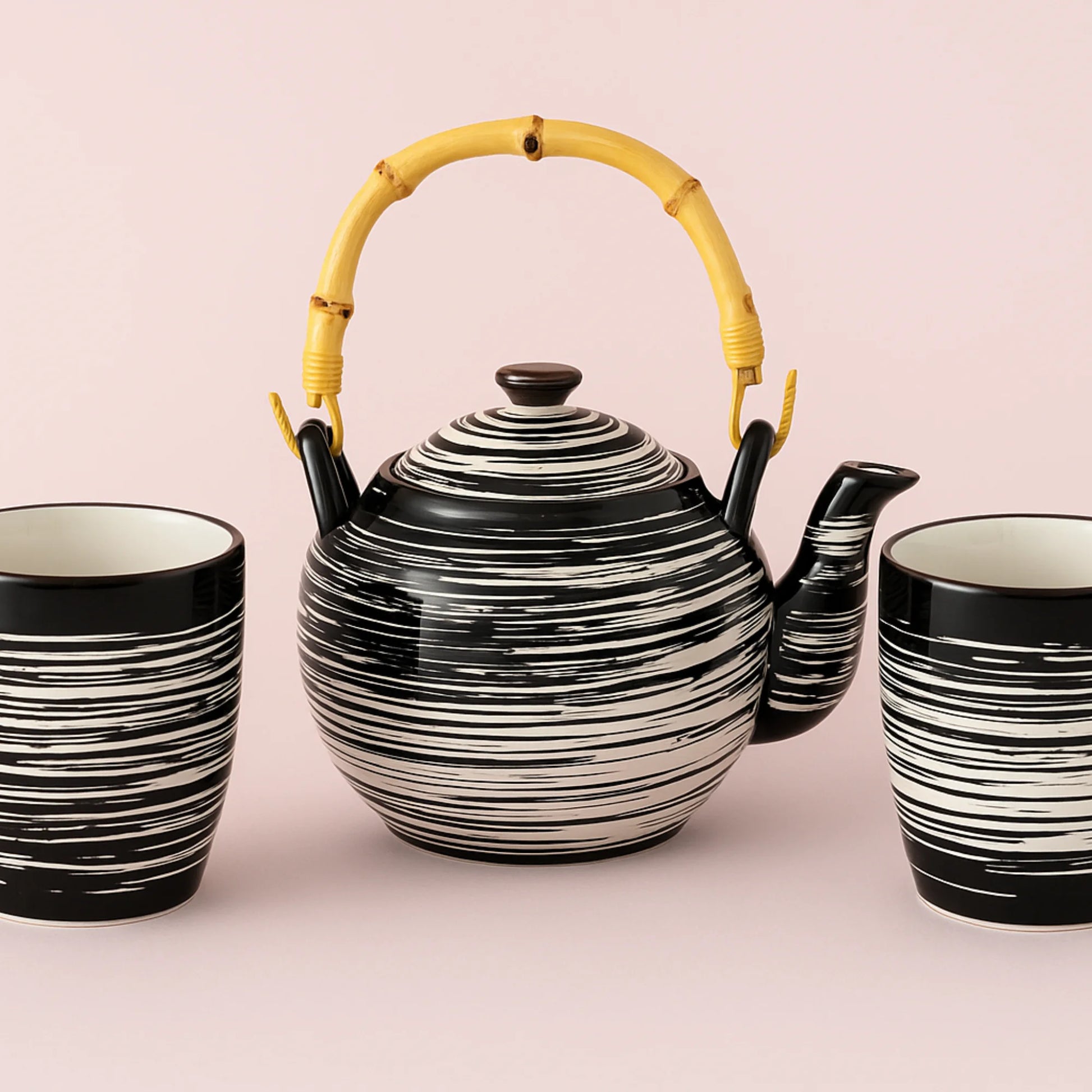 Refused and modern, these ceramic cups wear a pattern of black and ivory lines reminiscent of ink on paper. Their sober and refined design sublimates each tea or coffee break with a contemporary and craft touch.